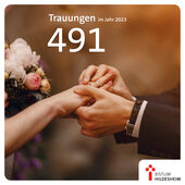 Die Zahl der Gottesdienstteilnehmenden im Bistum Hildesheim im Jahr 2023 lag bei 5,5 Prozent (2022: 4 Prozent). 491 Paare wurden im Jahr 2023 kirchlich getraut, 166 weniger als ein Jahr zuvor.