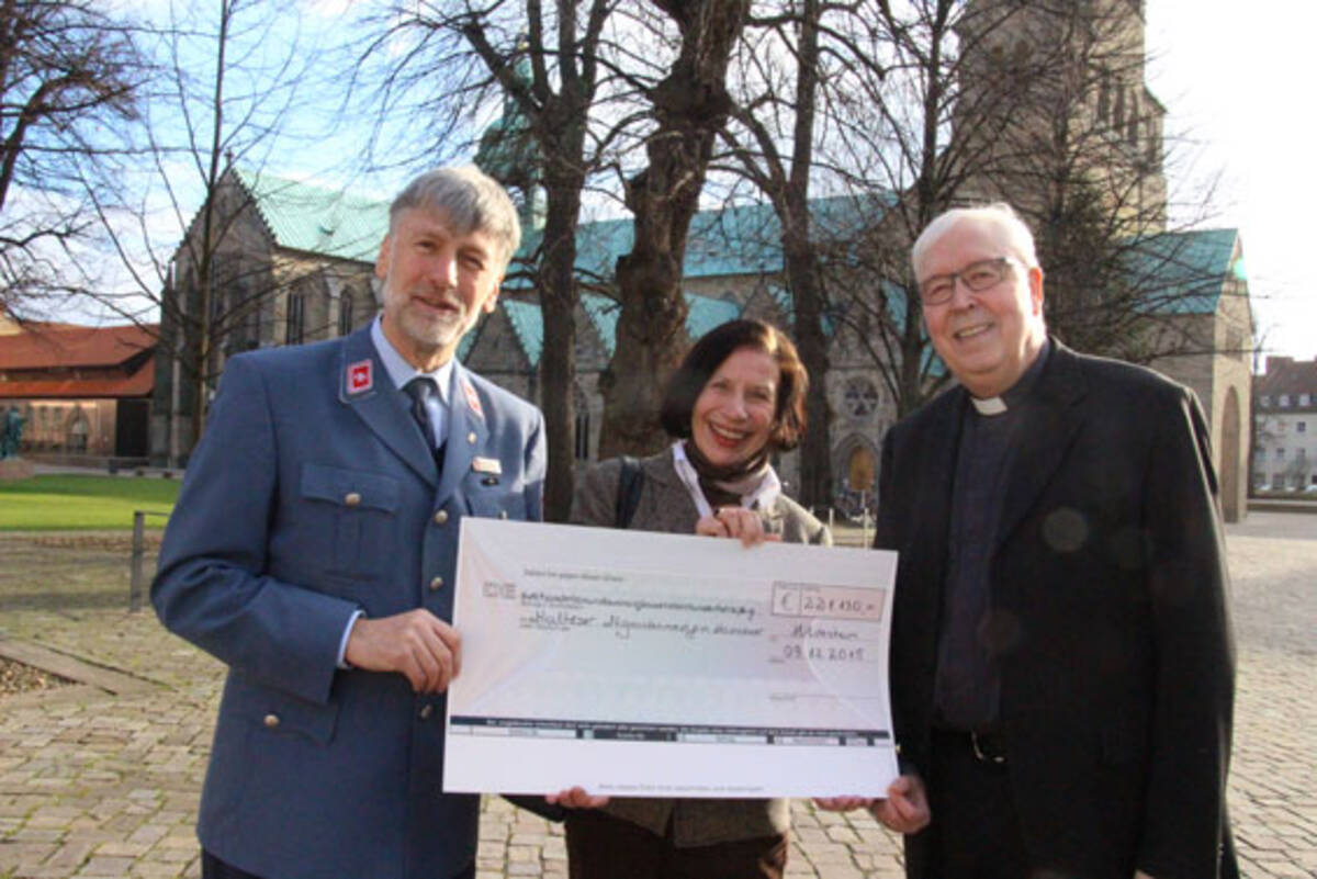 Für das bischöfliche Spendenprojekt zu Gunsten von Flüchtlingen sind 221.000 Euro zusammengekommen. Bischof Norbert Trelle überreichte im Bischofshaus in Hildesheim symbolisch einen Scheck über diese Summe an Maximilian Freiherr von Boeselager, den Leiter der Malteser in der Diözese Hildesheim, und die ärztliche Leiterin der Malteser Migranten Medizin Hannover, Dr. Renate von Keller. Ein Großteil des Geldes ist bereits an die Helfer ausgeschüttet worden.