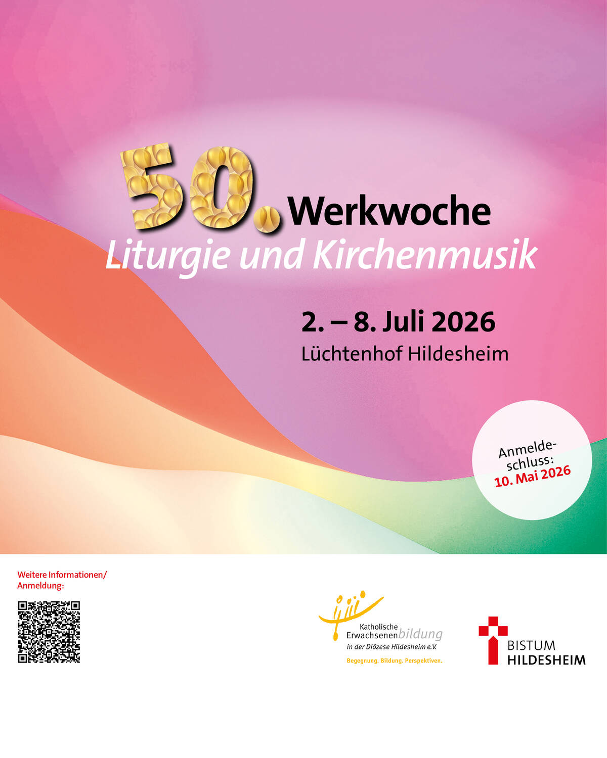 Vom 2. bis zum 8. Juli 2026 findet die inzwischen 50. Werkwoche für Liturgie und Kirchenmusik statt, zu der alle kirchmusikalisch Interessierten im Bistum Hildesheim eingeladen sind.
