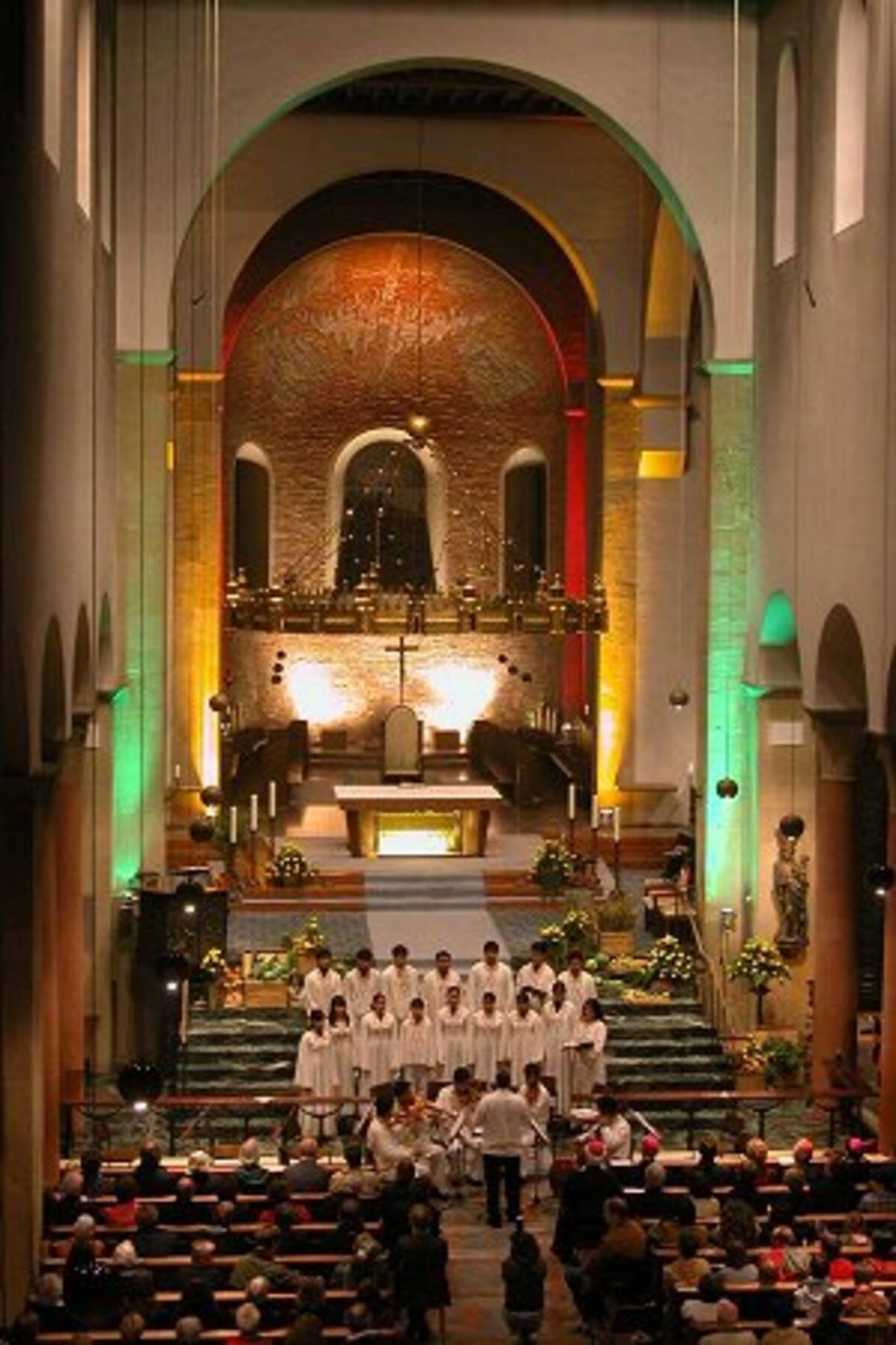 Bolivianische Lebensfreude nahm den Hildesheimer Dom am Abend dann im Sturm! Das bolivianische Jugendorchesters „Coro y Orquesta Misional de San Xavier“ gab in den ehrwürdigen Mauern sein Eröffnungskonzert einer Konzertreise durch Niedersachsen und Bremen mit bolivianischen Barockwerken. Einige Stücke spielten sie gemeinsam mit Schülern des Ursula-Gymnasiums Hannover. Das Konzert endete mit Volksweisen aus dem bolivianischen Tiefland, bei dem schließlich auch die Zuhörer zum Tanzen kamen. Als die jungen Sängerinnen in den Mittelgang des Doms kamen und zum Mitmachen aufforderten, durften auch die Geistlichen nicht widerstehen. Selbst Kardinal Julio Terrazas und die Bischöfe Homeyer und Trelle schwangen im vollen Ornat vorsichtig das Tanzbein.
