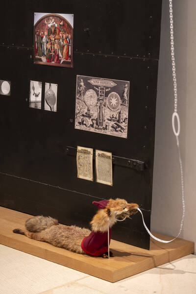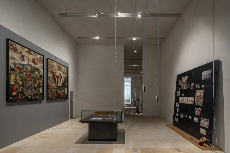 Ansicht aus der Ausstellung "Die Zirkulation von Arbeit Kapital und Leben als Lieferkette" von Alice Creischer und Andreas Siekmann im Dommuseum Hildesheim. Ausstellungszeitraum: 29.10.2025 bis 6. April 2026.