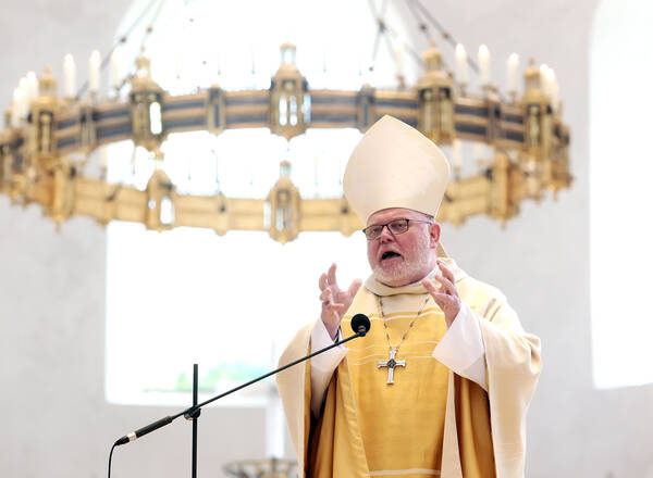 Reinhard Kardinal Marx feiert am Samstag, 4. Oktober 2025, um 15.30 Uhr in der Basilika St. Godehard einen Festgottesdienst, der zum Programm der Herbstinvestitur der deutschen Statthalterei des Ritterordens vom Heiligen Grab zu Jerusalem gehört. Dieses Archivbild zeigt Marx während eines Gottesdienstes im Hildesheimer Dom.