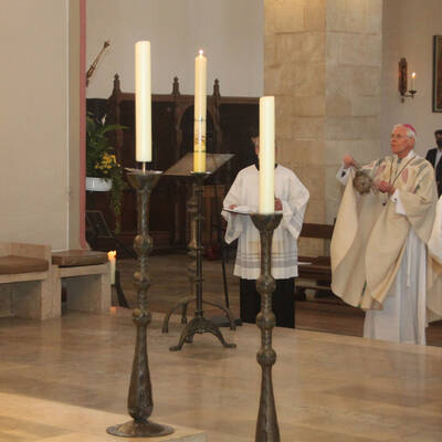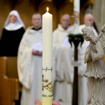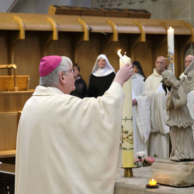 Weihbischof Heinz-Günter Bongartz feierte zusammen mit Ordensleuten den Eröffnungsgottesdienst in der Klosterkirche von Marienrode bei Hildesheim, wo ebenfalls eine Godehard-Kerze geweiht wurde. „Der Glaube ist nichts Statisches, er war immer Veränderung, Bewegung und Dynamik“, verwies der Weihbischof auf das Motto des Godehardjahres. „Das Evangelium bedeutet immer Sendung, wer die Kirche erneuern will, muss sich senden lassen“, betonte Bongartz.
