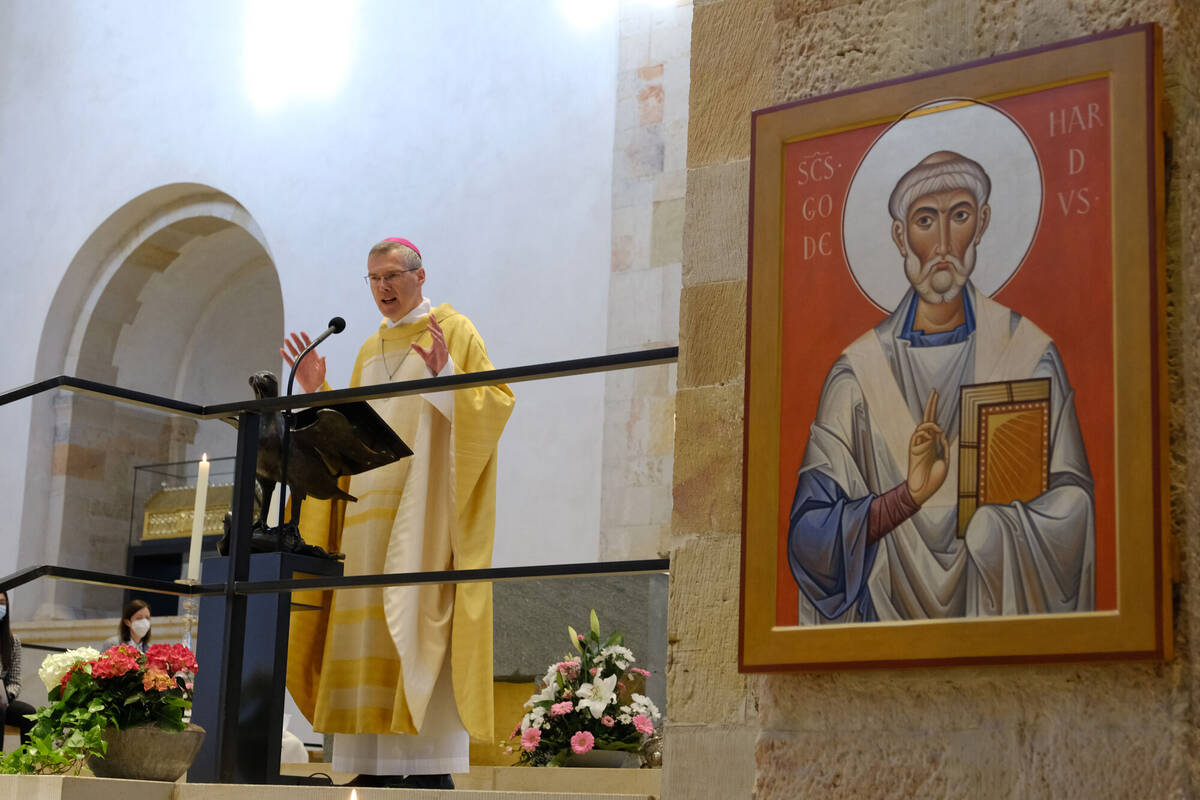 Bischof Wilmer beschrieb in seiner Predigt das Anliegen des Godehardjahres. Es gehe um eine innere Wandlung und Verwandlung in Christus. Dabei setze man drei Schwerpunkte: jesuanisch, benediktinisch, menschlich.