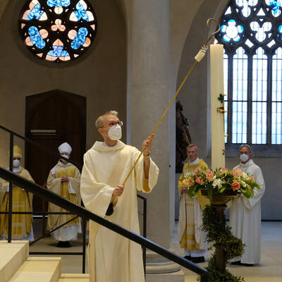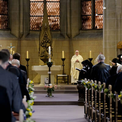 Mit den Mitgliedern des Diözesanrates der Katholik*innen im Bistum Hildesheim, den Dechanten und weiteren Vertretern aus den Dekanaten sowie einer internationalen Caritasdelegation hat Weihbischof Dr. Nikolaus Schwerdtfeger den Gottesdienst in der Basilika St. Godehard gefeiert. „Es braucht Mut und Entschlossenheit, ein Glaubender zu werden, als Volk Gottes unterwegs zu sein und die Kirche zu erneuern“, betonte Schwerdtfeger in seiner Predigt. Doch der Heilige Godehard ermutige alle, „die glühenden Kohlen des Glaubens zu den Menschen zu tragen“. Das Wachsen und Werden der Kirche gehe nicht ohne Gottes Feuer.