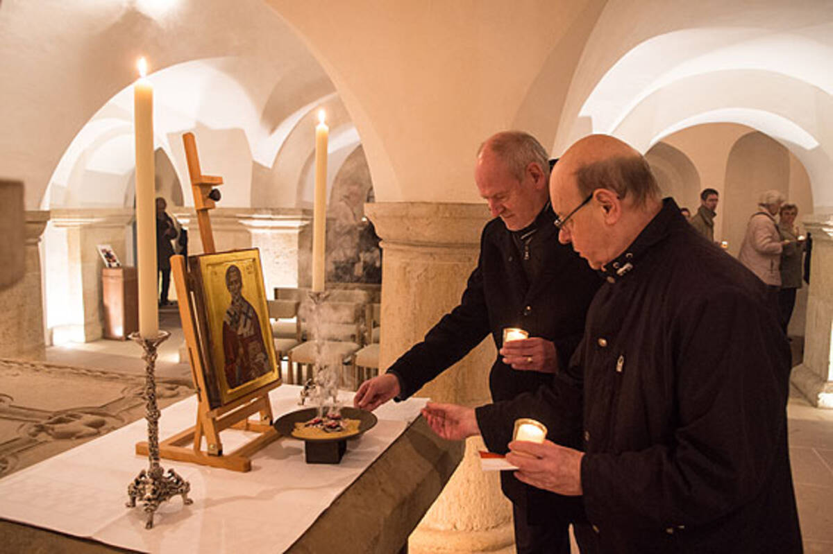 Mit einem ökumenischen Akzent begann am Abend des Bernwardfestes der Abschluss des Bistumsjubiläums. Gefeiert wurde der Gedenktag des heiligen Hildesheimer Bischofs mit einem ökumenischen Lichtergottesdienst. Begonnen im Dom, zog die Gottesdienstgemeinde in Prozession singend durch die Dunkelheit zur St. Michaeliskirche. Nach einer persönlichen Statio, einem kurzen Innehalten in der Krypta am Grabe Bernwards, wurde der Gottesdienst in der von ihm erbauten „Gottesburg“ fortgesetzt.
