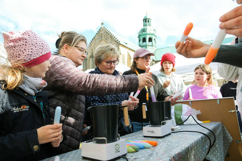 Schon am Nachmittag verwandelte sich der Domhof in einen Treffpunkt für junge Menschen aus allen Regionen des Bistums. 27 Stände aus Jugendpastoral, Verbänden und Einrichtungen luden dazu ein, Kirche in ihrer ganzen Breite zu entdecken. Kreative Angebote, Gespräche und Aktionen machten deutlich: Kirche ist ein Ort der Begegnung und gemeinsamer Erfahrungen.