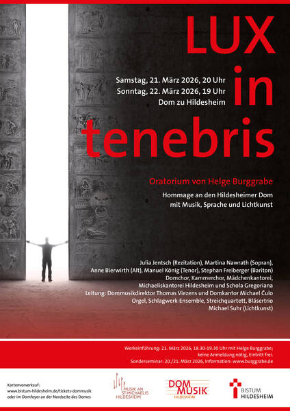 Das zweistündige Oratorium erzählt anhand des Bildprogramms auf den Flügeln der Bernwardtür des Mariendoms von Krieg und Zerstörung und der Sehnsucht nach Frieden. Damit ist es ein Werk über den Fall des Menschen in die Dunkelheit und seine Suche nach dem Licht. Helge Burggrabe hatte 2015 für das 1200-jährige Jubiläum des Bistums Hildesheim das Werk komponiert. Inzwischen haben es Kirchen in ganz Deutschland gesehen: Liebfrauendom München, Kaiserdom Speyer, Dome in Stendal und Bremen, Stiftskirche Tübingen, Sebalduskirche Nürnberg.