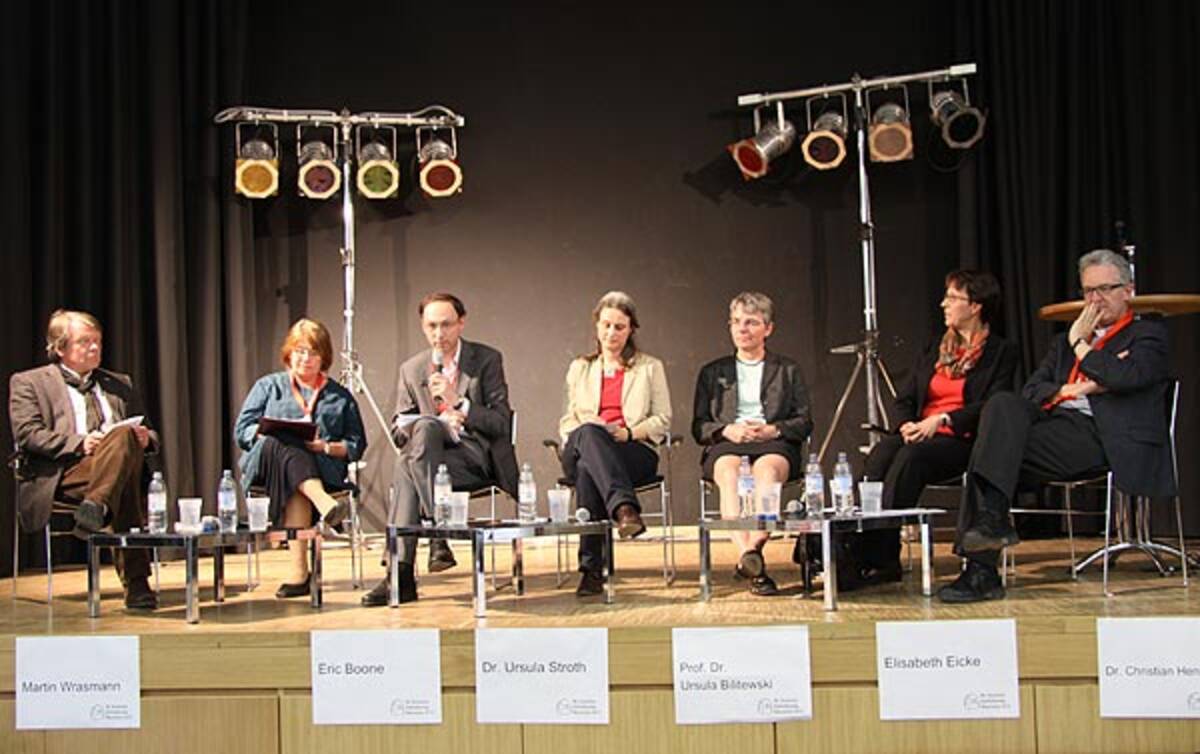 Eine Position, die unter der engagierten Moderation von Dr. Ursula Stroth Beifall fand bei dem Hildesheimer Regens Dr. Christian Hennecke und Martin Wrasmann, dem stellvertretenden Leiter der Hauptabteilung Pastoral im Bischöflichen Generalvikariat. Beide haben die neuen Leitungsmodelle gemeinsam mit dem Diözesanrat der Katholiken, dessen Vorsitzende Elisabeth Eicke ebenfalls auf dem Podium saß, mitgestaltet. Wrasmann möchte dadurch den „Thermoskanneneffekt“ warm halten nach innen, null Ausstrahlung nach außen durchbrechen. Dies werde in den Pfarrgemeinden nicht ohne fachliche Begleitung gehen, glaubt Hennecke.