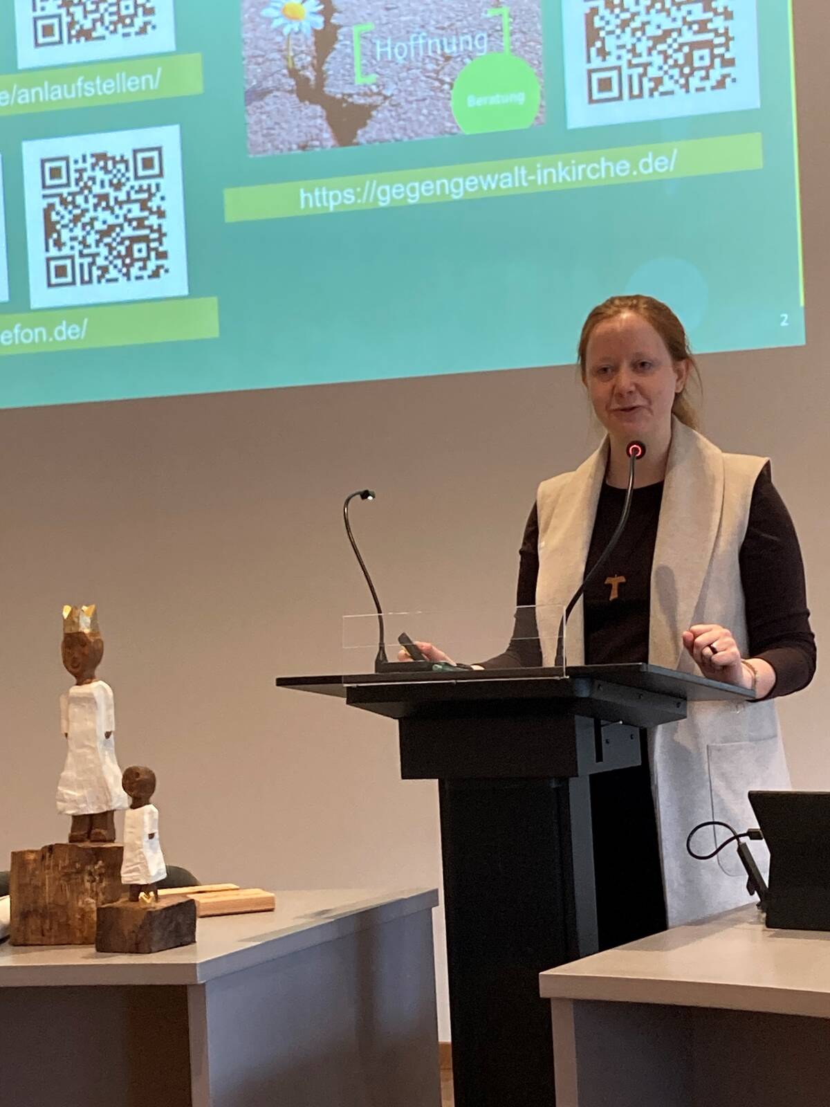 Zuvor hatte Professorin Claudia Höhl, die Direktorin des Dommuseums Hildesheim, in ihrer Keynote betont, Übergriffigkeiten hingen in der Kirche ebenso wie in der Gesellschaft in der Regel mit herrschenden Strukturen zusammen und könnten nicht losgelöst davon betrachtet werden. Die Machtstrukturen hingen in der kirchlichen Wirklichkeit nach wie vor mit der Propagierung eines binären Geschlechtsverständnisses zusammen. "Die Vorstellung einer von Gott selbst oder je nachdem der sogenannten Natur begründeten Geschlechterordnung mit der Festlegung geschlechtsspezifischer Rollen und Eigenschaften führen zwangsläufig zu einer hierarchischen Struktur, die Frauen eine untergeordnete Position zuweist."
