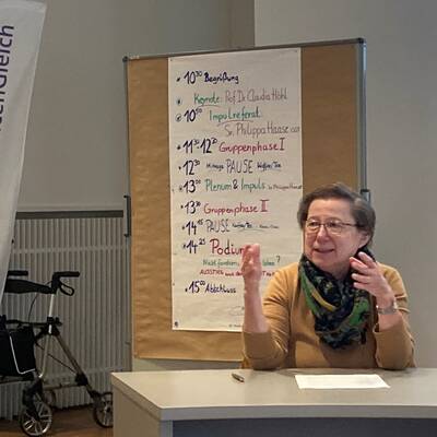 Sr. Philippa Haase, osf, leitete als Referentin und Impulsgeberin den Tag, der vor allem den Frauen einen offenen wie auch geschützten Geprächsraum bieten sollte. Sie ist wissenschaft-liche Mitarbeiterin an der Professur für Pastoraltheologie und Homiletik der Universität Regensburg. Anhand konkreter Beispiele aus der Glaubenspraxis zeigte sie, was spirituelle Selbstbestimmung eigentlich heißt, wo diese gefährdet ist und es zu Grenzüberschreitungen kommen kann. Exemplarisch für Letztere ist ihren Angaben zufolge, wenn jemand gezwungen werde zu beichten. Die Referentin, zu deren Forschungsschwerpunkten das Phänomen des geistlichen Missbrauchs an erwachsenen Frauen gehört, arbeitete mit den Teilnehmerinnen heraus, wie spirituelle Selbstbestimmung gefördert werden kann. Angeleitete Gesprächsgrup-pen boten dafür immer wieder Raum.