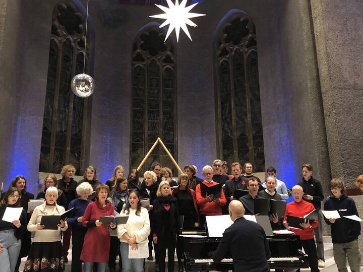Der Lister Chor „Die Chorifeen“ singt unter der Leitung von Klaus Wössner traditionelle und moderne Advents- und Weihnachtslieder. Sie singen von Sternen und Engeln, von Turteltauben und Rosen, vom Sandmann und vom Flug zum Mars.
