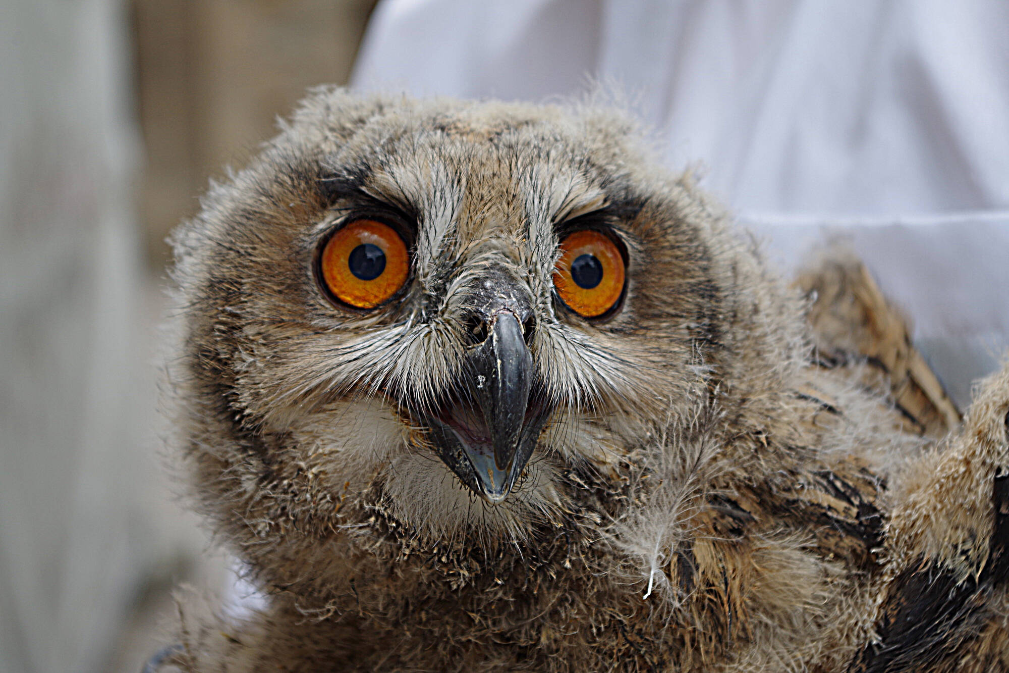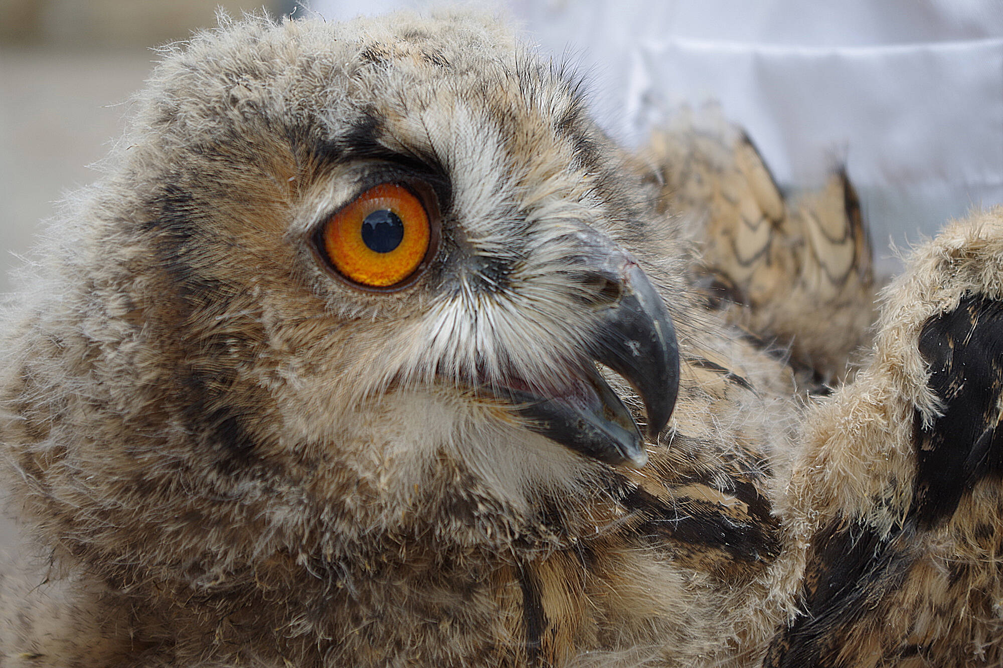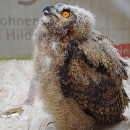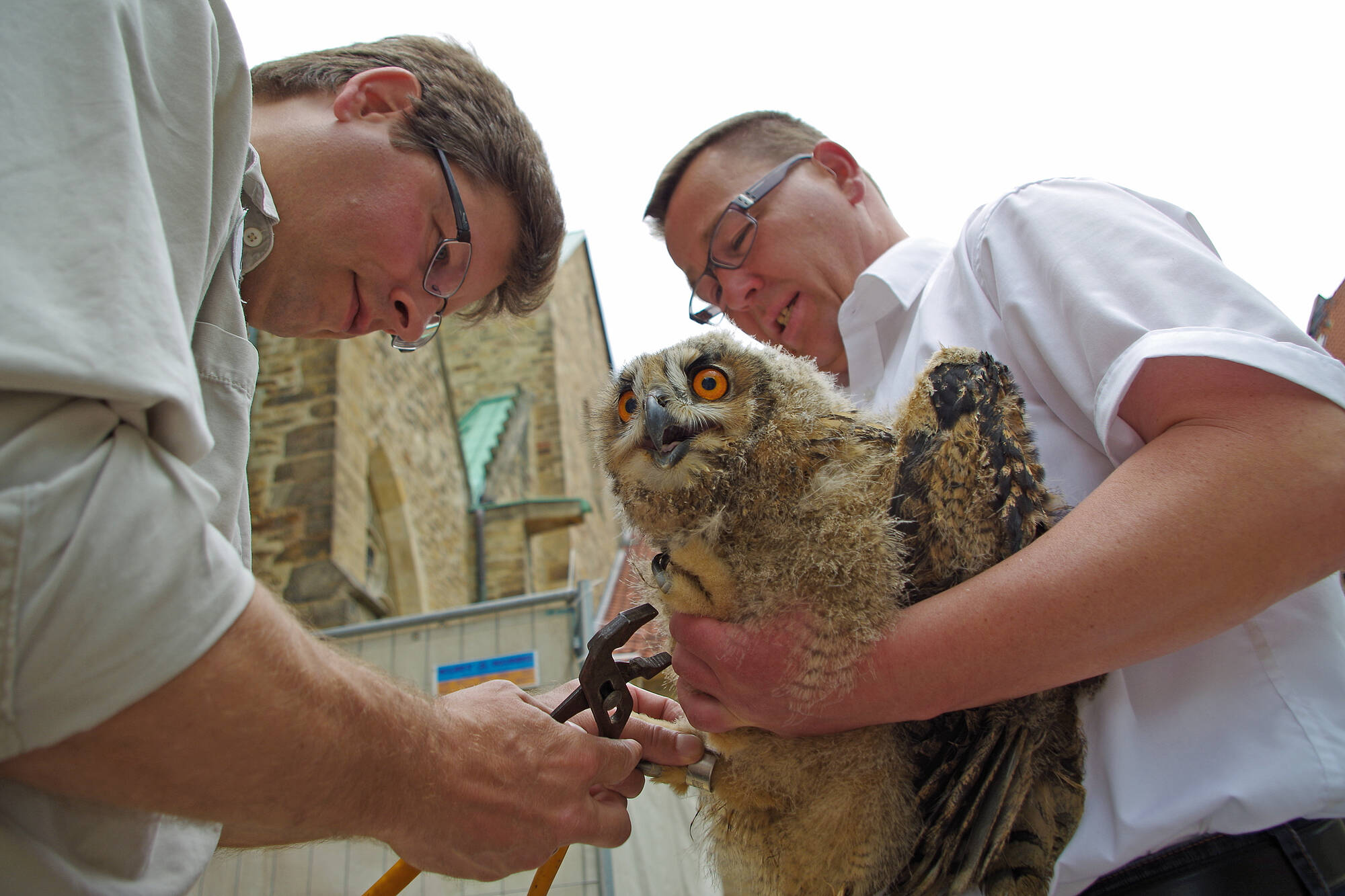 Die Hildesheimer Dom-Uhus bei der Beringung im Jahr 2014.
