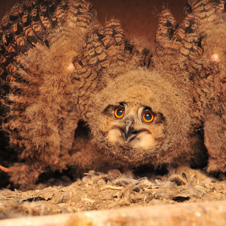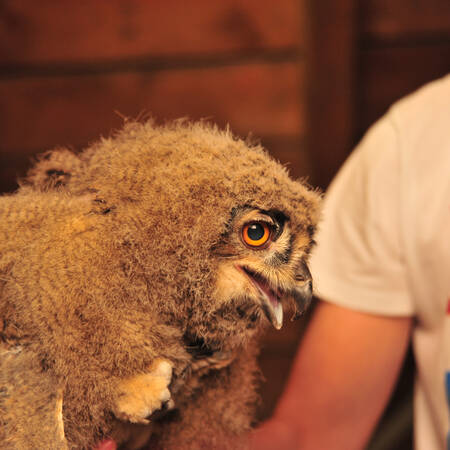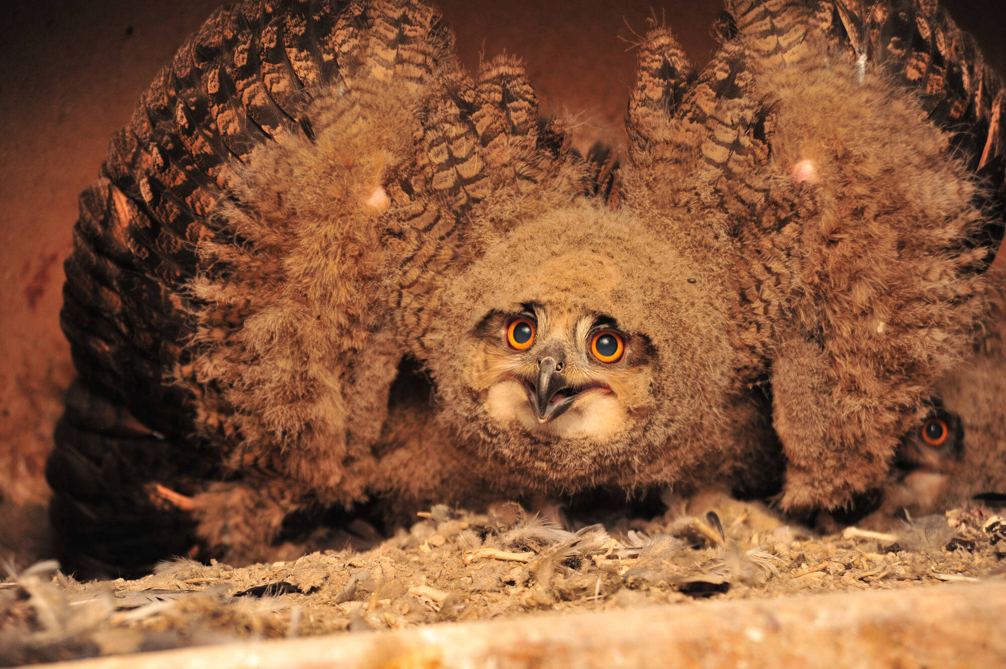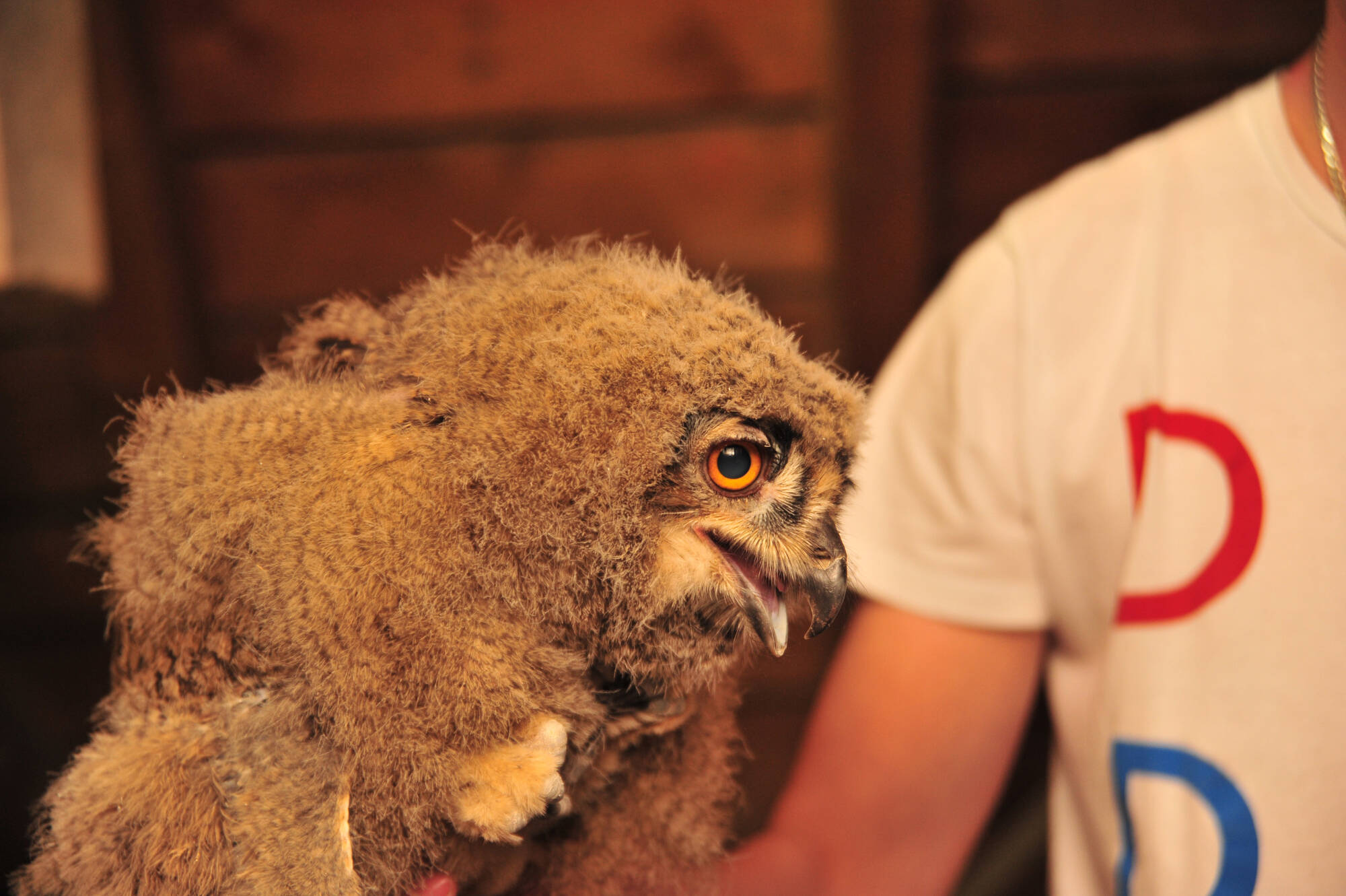 Die Hildesheimer Dom-Uhus bei der Beringung im Jahr 2014.