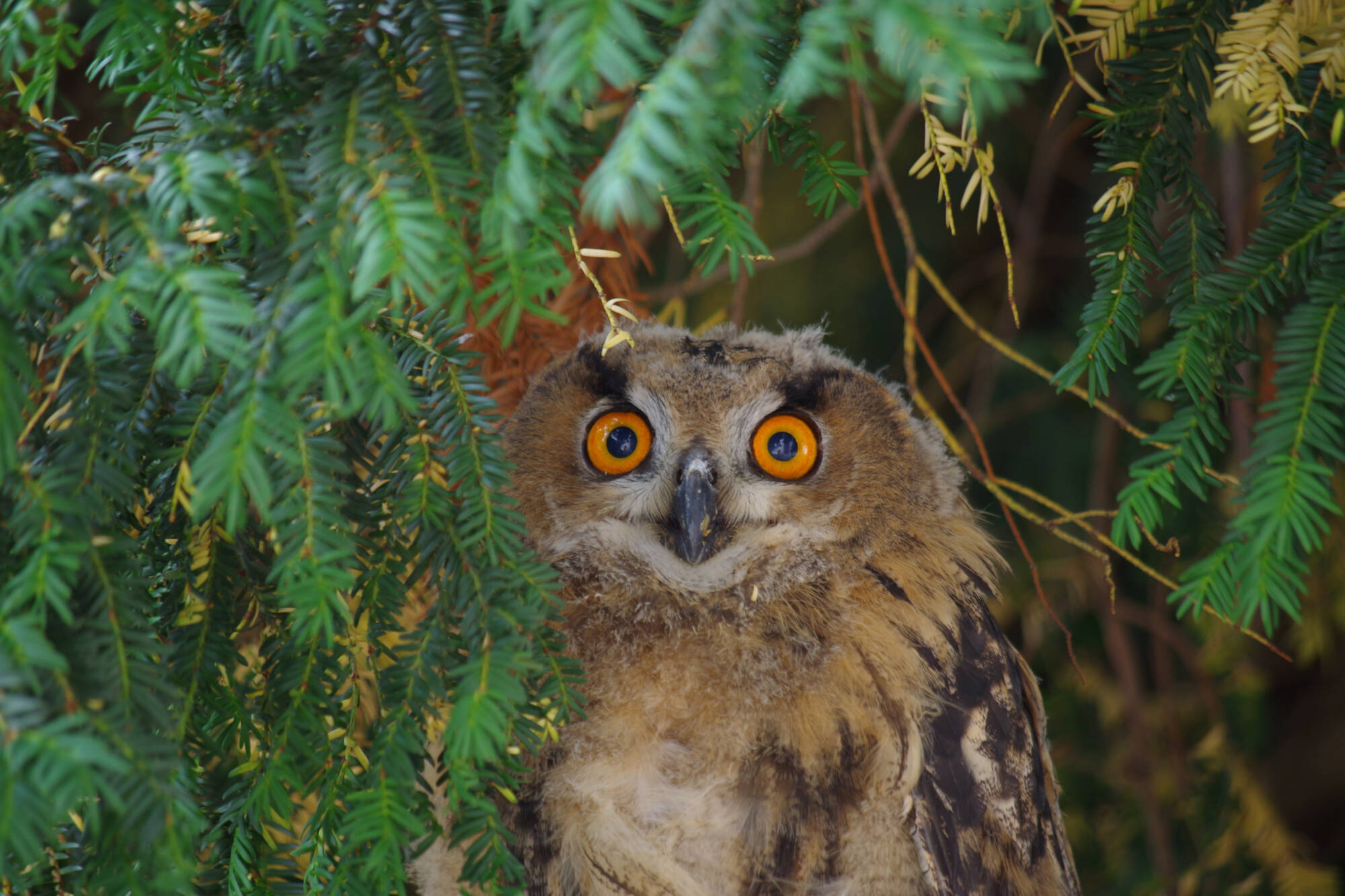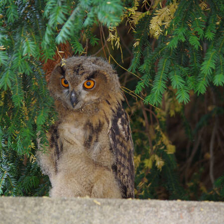 Die Hildesheimer Dom-Uhus im Jahr 2014.
