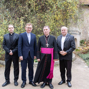 Bischof Heiner Wilmer erhält am Weinberg selbst die jährliche Ernte-Abgabe vom Hildesheimer Weinkonvent
