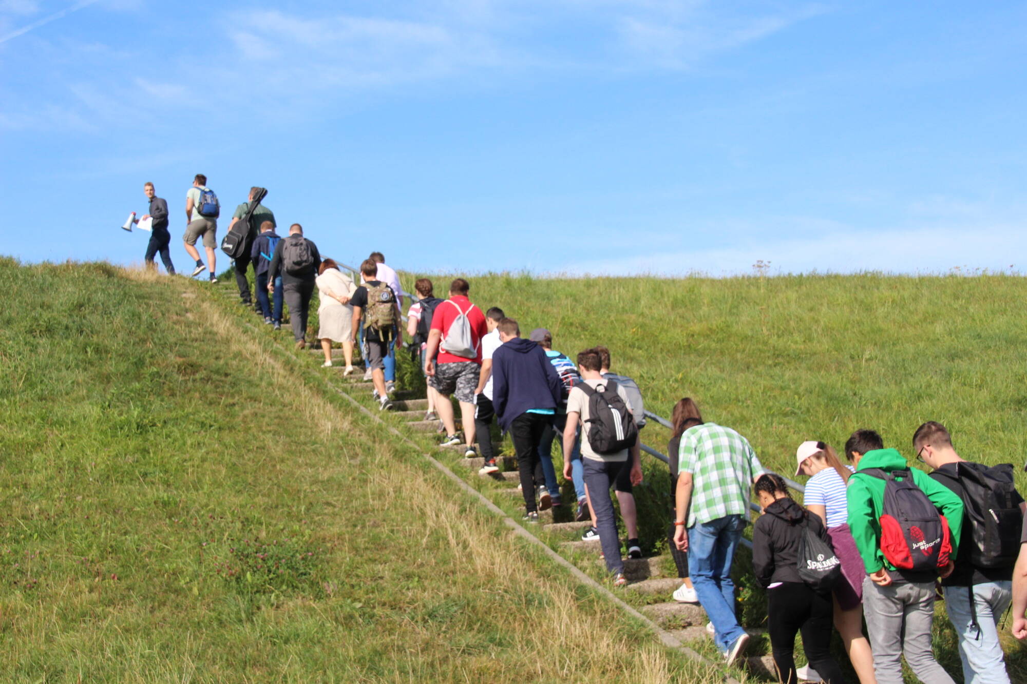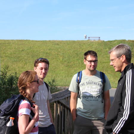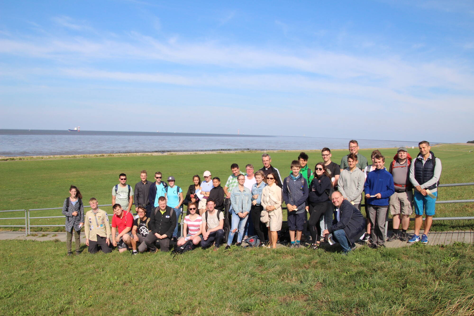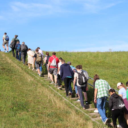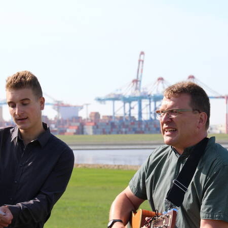 Der Startpunkt lag auf dem Deich, mit Blick auf die Kräne des naheliegenden Hafens. Nach zwei Stunden Fußmarsch erreichte die Gruppe den Speckenbütteler Park, wo eine kurze Rast eingelegt wurde. Endstation am Nachmittag war die Kirche St. Marien in Bremerhaven, wo die Teilnehmer nach einem Gottesdienst sich mit einer Pizza stärken konnten.