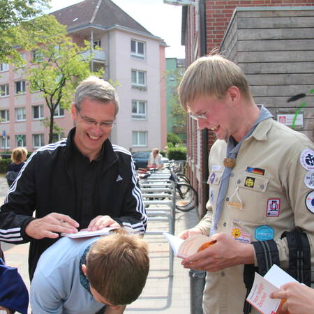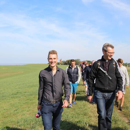 Am Samstag, 18. August, pilgerte Pater Heiner Wilmer mit Jugendlichen aus dem Bistum Hildesheim in Bremerhaven. "Ich möchte von euch lernen und will wissen, was ich tun soll, wenn ich euer Bischof bin", sagte Pater Wilmer zur Begrüßung. Auf dem Weg sollten die Jugendlichen Fragen beantworten: "Was wollen wir junge Menschen dem neuen Bischof mitgeben? Wie soll er leben/glauben/beten/predigen? Welche Schwerpunkte sollte Bischof Heiner in seinem Dienst an den Menschen setzen? Was soll er tun?"