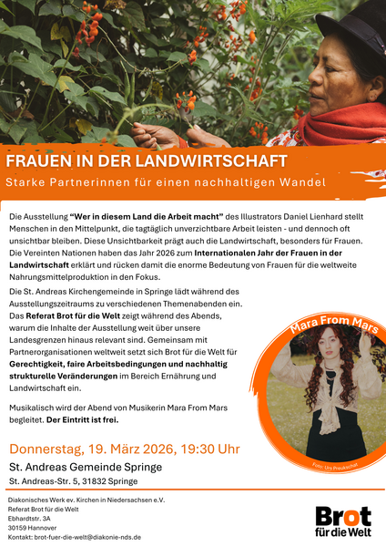 Dass die Ausstellung „Wer in diesem Land die Arbeit macht“ in Springe zu sehen ist, haben hier mehrere Sponsoren ermöglicht. Zuschüsse kommen vom Kirchenkreis Laatzen-Springe, von der evangelischen Agentur Arbeit und Wirtschaft, von der katholischen Arbeitnehmerbewegung sowie der Christ-König-Gemeinde Springe. Die Ausstellung und alle Veranstaltungen sind für alle Besucher kostenlos.