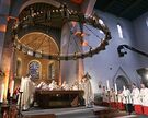 Einführung von Bischof Norbert Trelle als 70. Bischof von Hildesheim am 11. Februar 2006 im Hildesheimer Dom. Der Altarraum wird beherrscht vom mächtigen Hezilo-Leuchter; Bildquelle: Hartmann