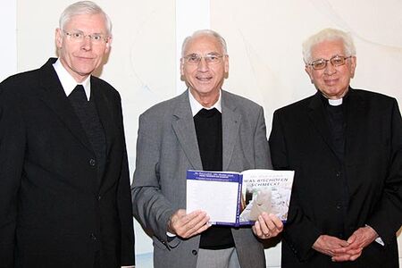 Übergabe Kochbuch deutsche Bischöfe an Bischof em. Homeyer und Weihbischof Schwerdtfeger